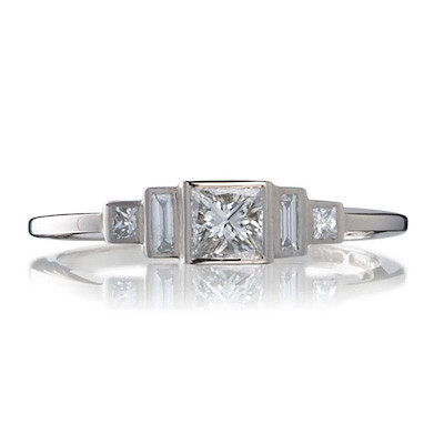 Британский ювелирный бренд «Cred» создает обручальные кольца с этической основой. Его кольцо «Deco Trilogy» («Трилогия Деко») с пятью камнями современной огранки, установленными ступеньками, напоминает элегантный период эклектического художественного и декоративного стиля «арт-деко».
